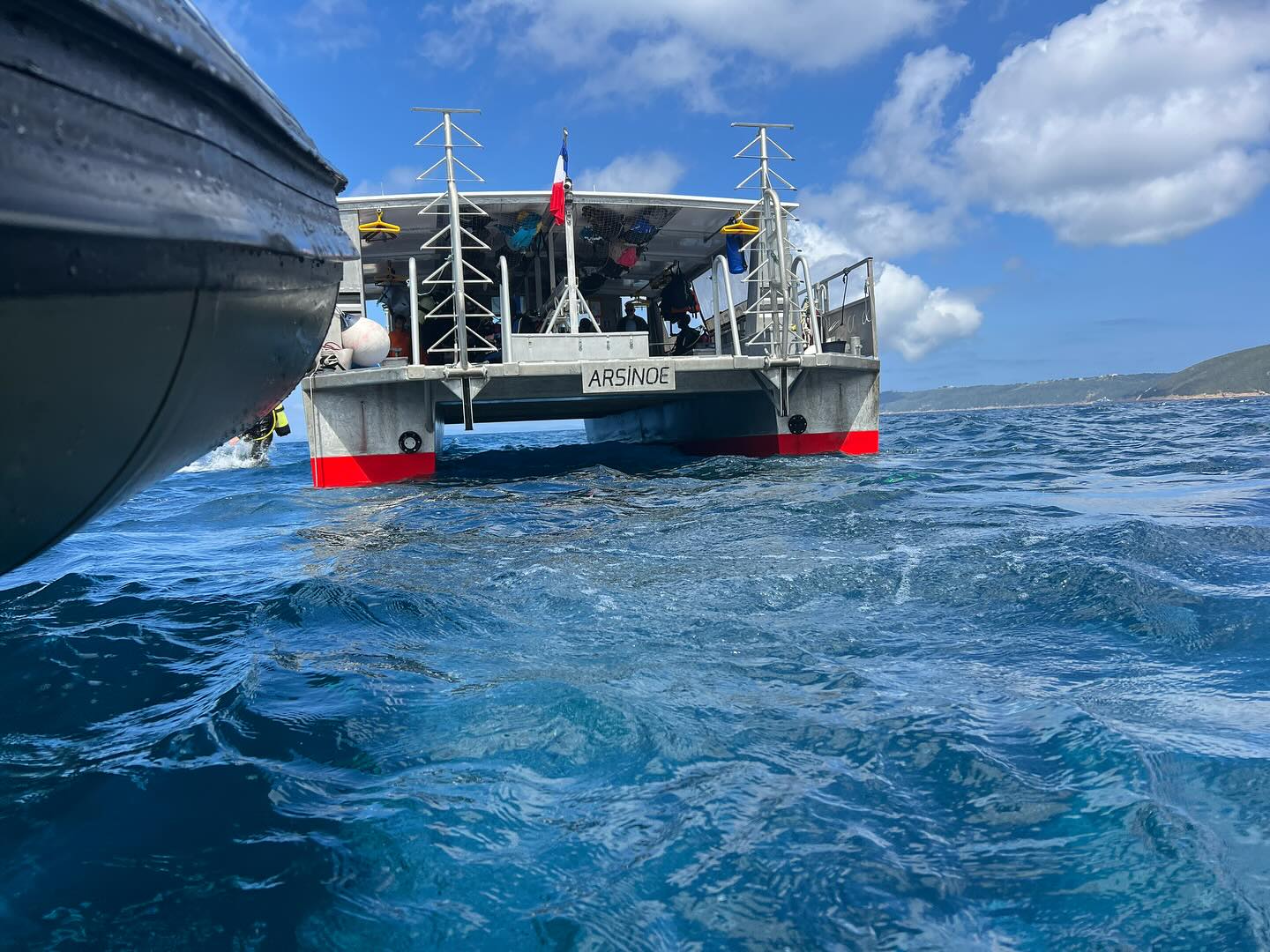 Véritable fleuron du centre, Arsinoé est un catamaran en aluminium de 14 mètres par 6 mètres, pensé par et pour les plongeurs. Spacieux, rapide et parfaitement équipé, il vous emmène confortablement sur tous les sites, même en cas de conditions difficiles.